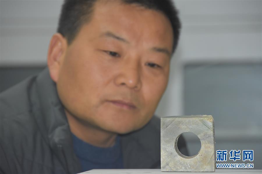 這是發(fā)掘的隨葬“搖錢樹(shù)”底座(11月15日攝)。