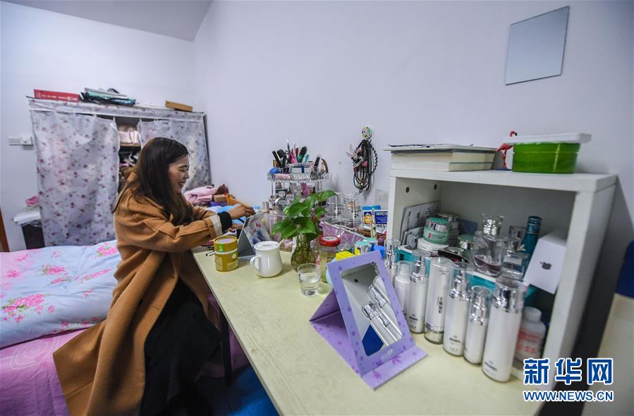 12月20日,一名童裝產(chǎn)業(yè)園的工人在位于園區(qū)內(nèi)的宿舍內(nèi)整理個人用品。該童裝產(chǎn)業(yè)園共有員工標準宿舍2000多間,從2017年開始陸續(xù)投入使用。 新華社記者 徐昱攝