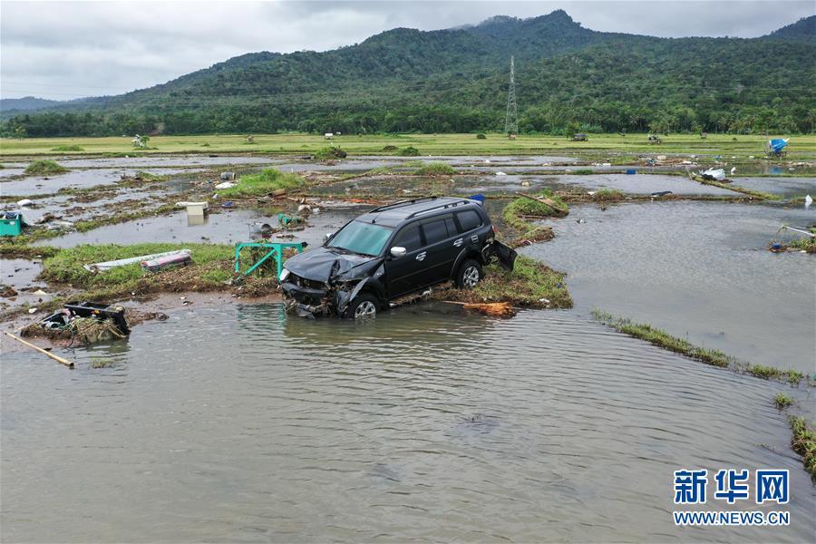 這是12月24日拍攝的印尼萬(wàn)丹省一處被海嘯損毀的農(nóng)田。 印度尼西亞抗災(zāi)署發(fā)言人24日說(shuō),印尼西部巽他海峽海嘯死亡人數(shù)已經(jīng)上升至373人。 新華社記者 杜宇 攝