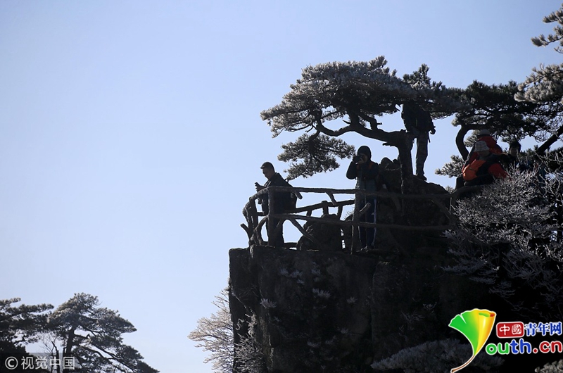 4月15日,安徽黃山出現(xiàn)了四月陽春罕見的霧凇奇觀。圖片作者:施廣德/視覺中國(guó)