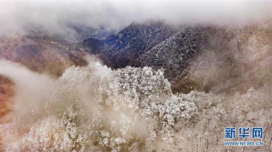 11月5日無人機拍攝的陜西省漢中市佛坪縣涼風(fēng)埡景區(qū)雪景。 新華社記者陶明攝
