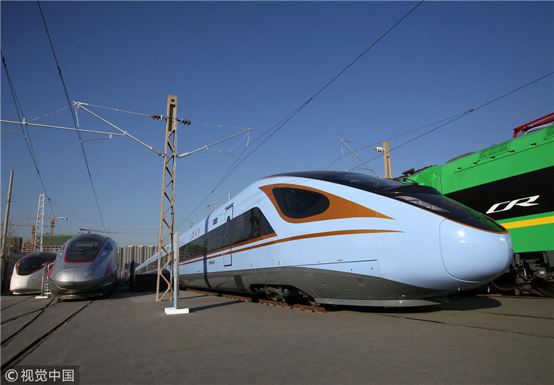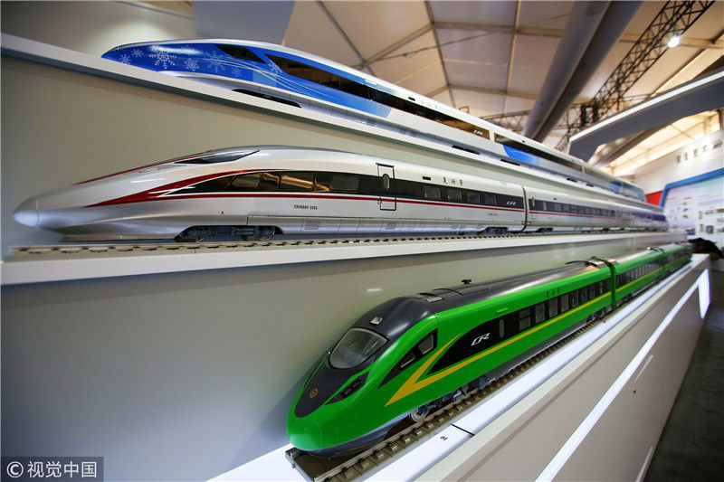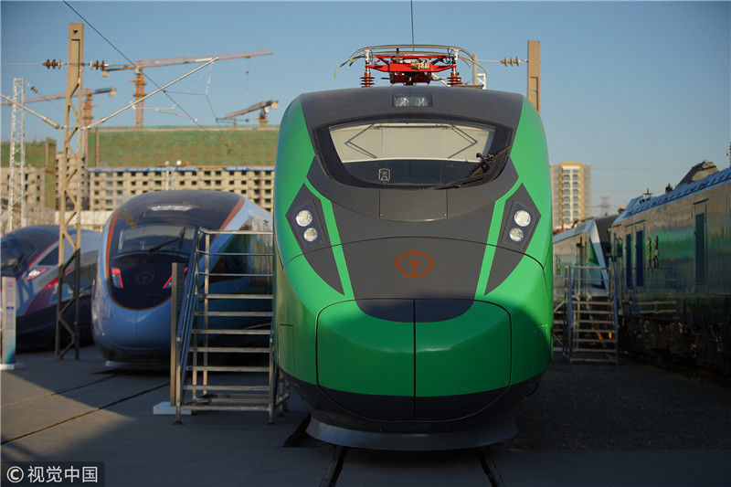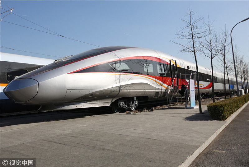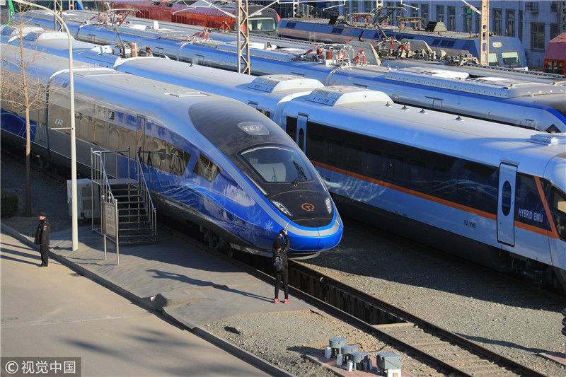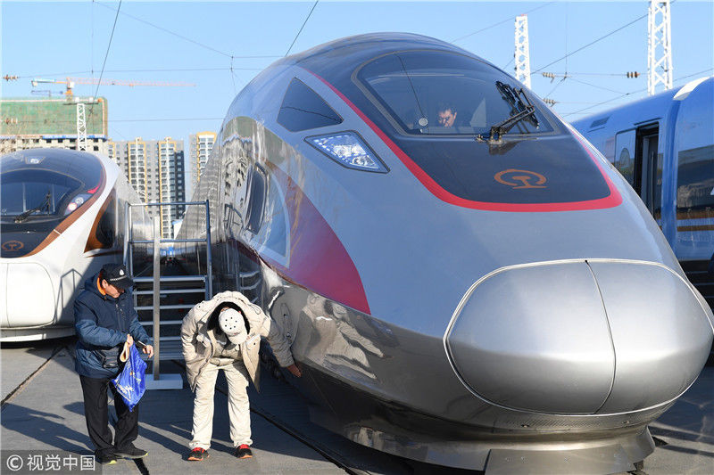 2018年12月24日,北京,中國鐵路科技創(chuàng)新成果展在國家鐵道試驗(yàn)中心舉行。新型復(fù)興號(hào)動(dòng)車組實(shí)車首次公開亮相,現(xiàn)場(chǎng)體驗(yàn)乘車運(yùn)行。視覺中國