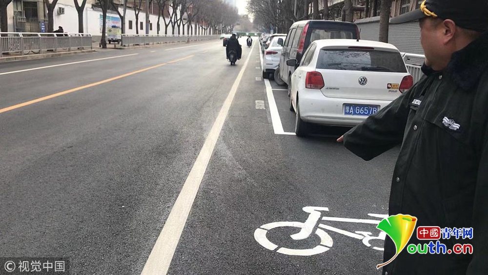 “你看看,自行車道被新劃的停車位占住了,路邊沒(méi)有停車還好,一旦有汽車,我騎車只能走快車道,基本沒(méi)有騎車的位置了?!笔忻駨埾壬f(shuō),“這里最多能容下一輛電動(dòng)車通行,不走機(jī)動(dòng)車道你說(shuō)走哪?”