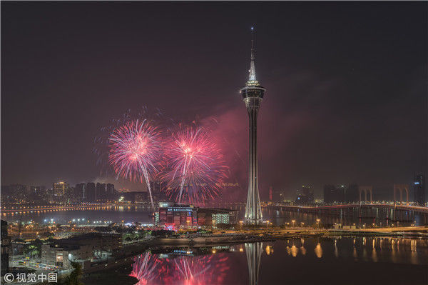 2018年1月1日,凌晨,澳門(mén)跨年煙花匯演。2018年元旦澳門(mén)舉行的跨年煙花匯演。