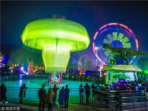2017年12月31日,南京銀杏湖樂(lè)園跨年夜,燈光璀璨。