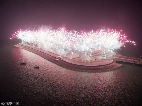 2017年12月31日,港珠澳大橋全線亮燈,標(biāo)志著全線供電照明系統(tǒng)施工圓滿完成,意味著港珠澳大橋主體工程已經(jīng)具備通車(chē)條件。亮燈儀式上,大橋東人工島四周燃放起壯麗的煙花。