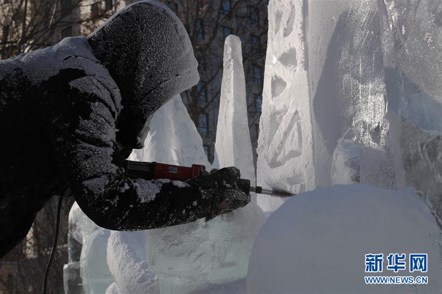 12月27日,選手在比賽中完善冰雕作品。 當(dāng)日,第十六屆黑龍江省大學(xué)生冰雕藝術(shù)設(shè)計(jì)創(chuàng)作大賽在哈爾濱兆麟公園落下帷幕,全省高校共有99支隊(duì)伍參賽。 新華社記者曹霽陽攝