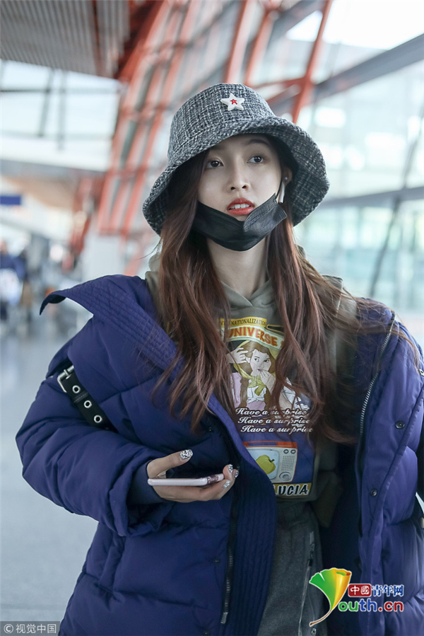 1月1日,北京,吳宣儀現(xiàn)身機(jī)場(chǎng)。外帶著漁夫帽的她嘟嘴顯可愛(ài),裹著厚重羽絨服認(rèn)真過(guò)冬超保暖。