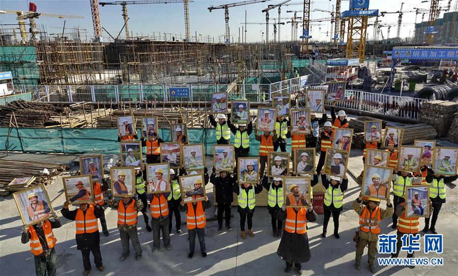1月9日,中建一局北京城市副中心周轉(zhuǎn)房項(xiàng)目工地施工單位的職工在展示自己的照片。 當(dāng)日,由北京市總工會主辦的工會“兩節(jié)”送溫暖活動之一的“把微笑帶回家,為最美勞動者點(diǎn)贊”大型公益活動,在中建一局北京城市副中心職工周轉(zhuǎn)房項(xiàng)目工地舉行。眾多勞動者獲贈“微笑”肖像照和保溫壺、毛巾等新春“大福包”。 新華社記者 李欣 攝