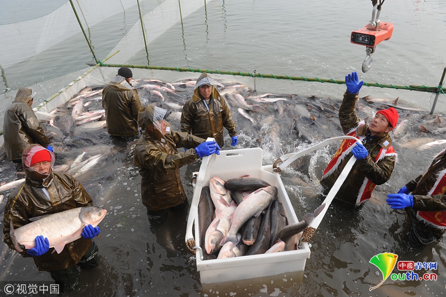 安徽阜陽(yáng):八里河冬捕魚“頭魚”拍出88萬(wàn)元