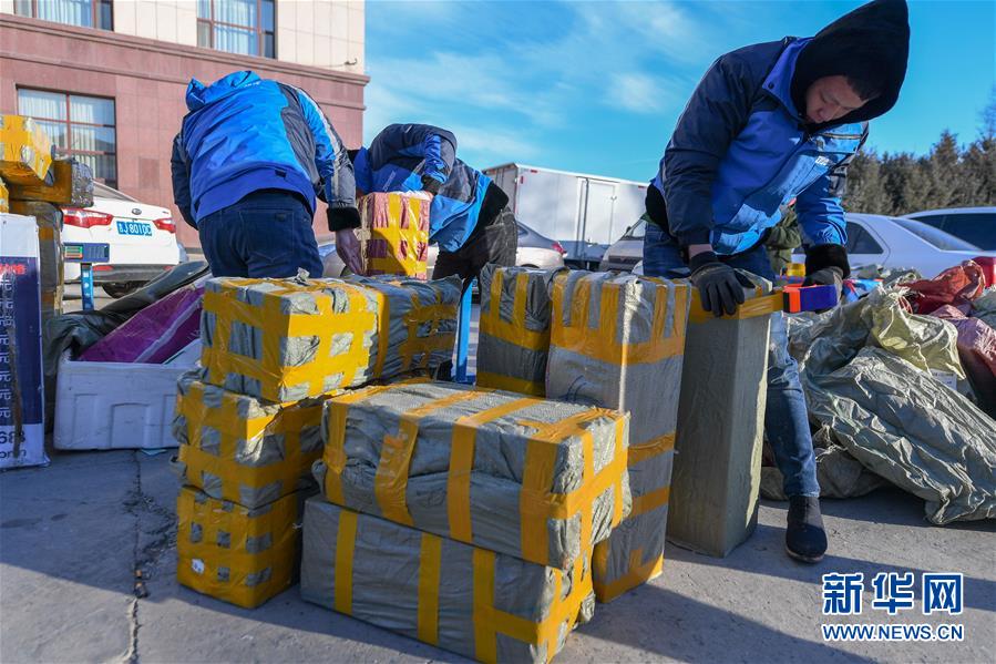 12月27日,在吉林松原查干湖漁場(chǎng),快遞員將魚打包準(zhǔn)備發(fā)給客戶。 隨著吉林松原查干湖冬捕知名度不斷提高,全國(guó)各地消費(fèi)者對(duì)查干湖魚的需求量逐年增大。2014年開始,多個(gè)電商平臺(tái)和快遞企業(yè)紛紛抓住商機(jī)進(jìn)駐查干湖。經(jīng)過多年發(fā)展,借助互聯(lián)網(wǎng)銷售優(yōu)勢(shì)和日趨完善的快遞網(wǎng)絡(luò),全國(guó)多地的百姓可以在魚出水后的48小時(shí)內(nèi)品嘗到查干湖魚的鮮美滋味。 新華社記者張楠攝