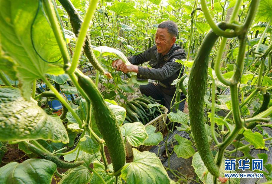 1月10日,唐山海港經(jīng)濟(jì)開(kāi)發(fā)區(qū)王灘鎮(zhèn)東高村農(nóng)民在大棚內(nèi)采摘黃瓜。 河北省唐山海港經(jīng)濟(jì)開(kāi)發(fā)區(qū)采取“合作社+產(chǎn)業(yè)基地+農(nóng)戶(hù)”模式,扶持當(dāng)?shù)胤N植戶(hù)規(guī)?;⒐叩忍厣a(chǎn)業(yè)生產(chǎn)基地,帶動(dòng)農(nóng)民增收致富。 新華社記者楊世堯攝