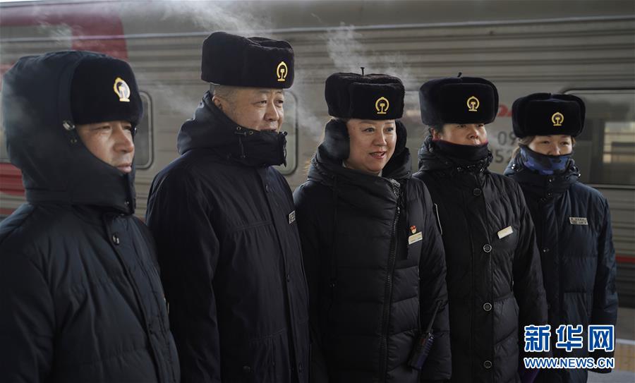 1月11日,在滿洲里火車站站臺,由于氣溫近零下30攝氏度,“金鑰匙”服務臺客運員“呵氣成霧”。