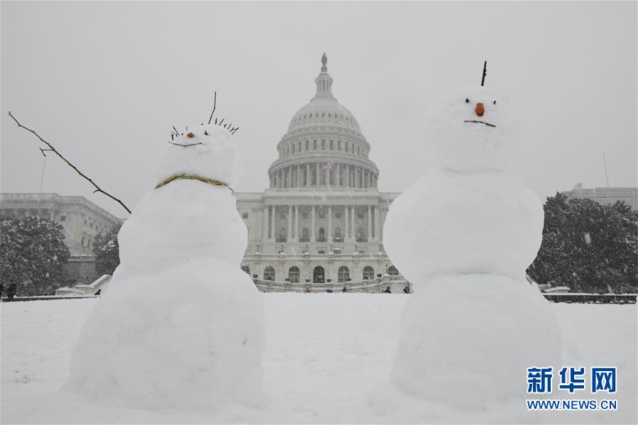 這是1月13日在美國首都華盛頓拍攝的雪中的國會山。 近日,美國首都華盛頓及其周邊地區(qū)普降暴雪。降雪導致部分航班晚點或取消,道路交通事故增多。 新華社記者 劉杰 攝