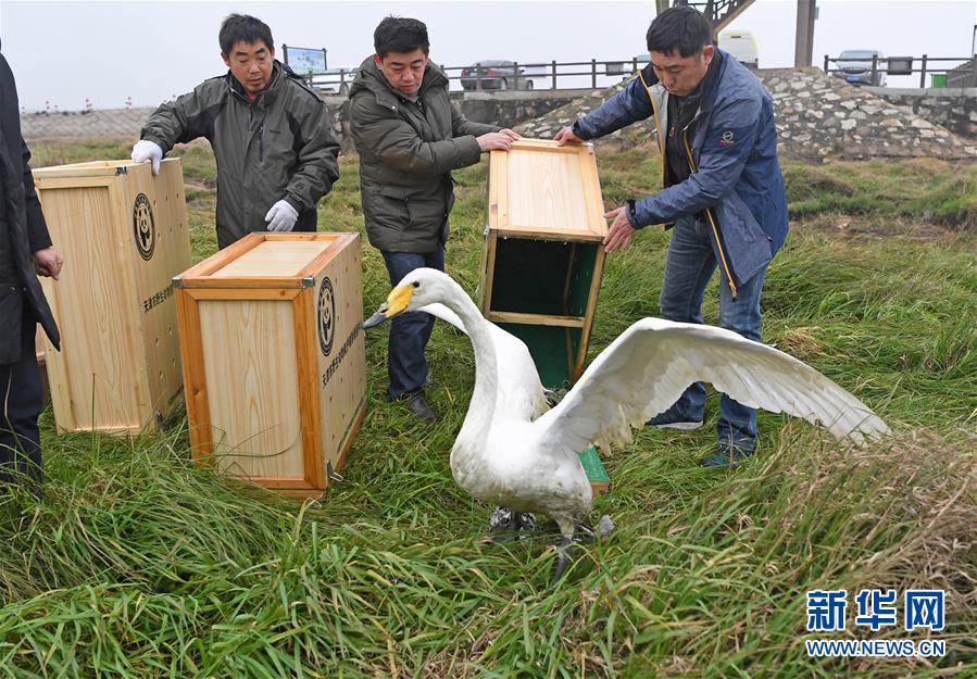 當(dāng)日,江西省野生動植物救護繁育中心、天津市野生動物救護馴養(yǎng)繁殖中心在江西鄱陽湖國家級自然保護區(qū)將16只被救治的珍稀候鳥成功放飛。其中1只東方白鸛為國家一級保護動物,2只大天鵝、3只鴛鴦為國家二級保護動物。