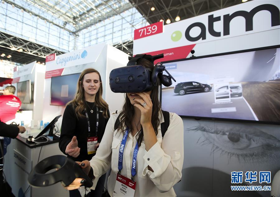1月14日,在美國紐約舉行的全國零售商聯(lián)合會年度大會的“創(chuàng)新實驗室”展廳,參觀者嘗試一款用虛擬現(xiàn)實技術(shù)實現(xiàn)遠(yuǎn)程選車的應(yīng)用。 美國全國零售商聯(lián)合會年度大會于1月13日至15日在紐約舉行,許多來自世界各地的展商帶來使用新技術(shù)開發(fā)出的軟硬件產(chǎn)品,向觀眾展示未來零售業(yè)的新愿景。 新華社記者 王迎 攝