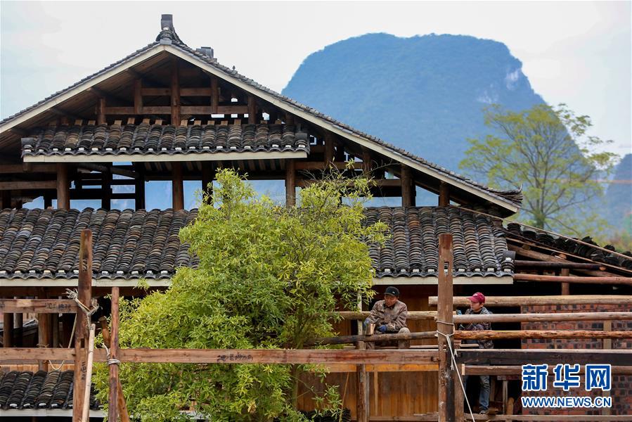 1月15日,工人在廣西融水苗族自治縣融水鎮(zhèn)夢嗚苗寨建設房屋。