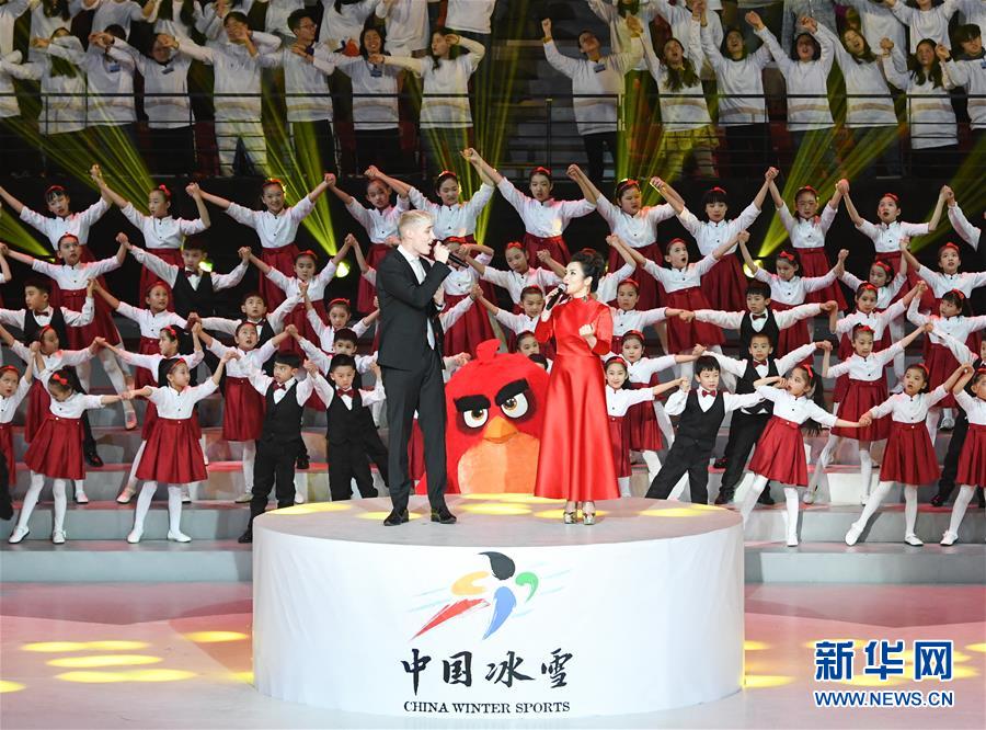 1月15日,演員在開幕式上表演。 當日,“2019中芬冬季運動年”開幕式在北京首鋼冰球館舉行。 新華社記者申宏攝