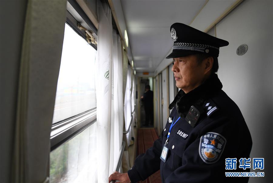 1月1日,在越南河內(nèi)(嘉林)開(kāi)往中國(guó)南寧的列車上,乘警楊鐵鳴注視著車外。 新華社記者陸波岸攝