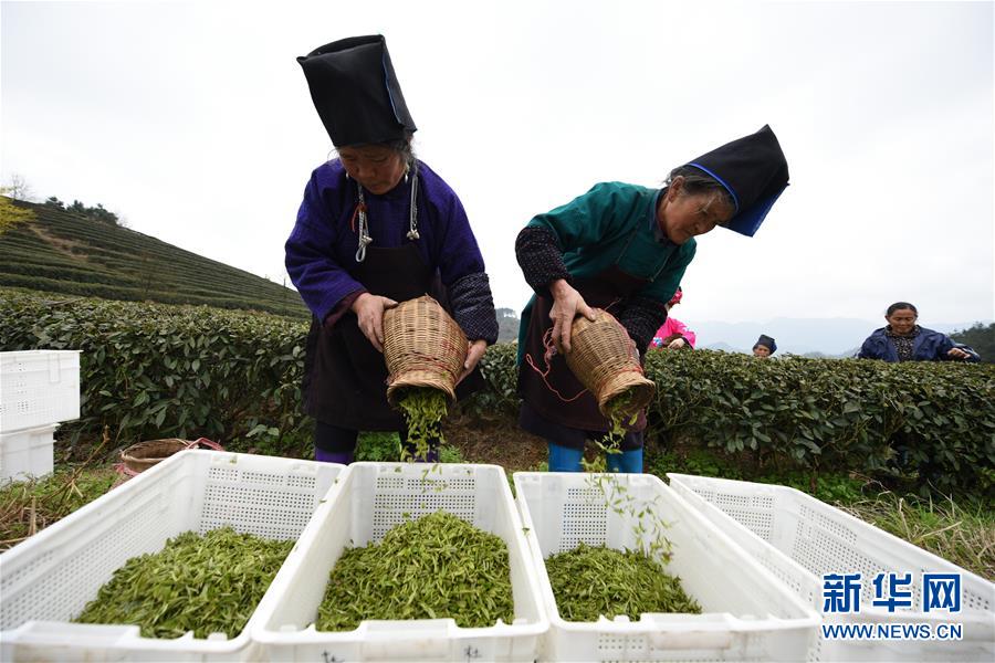 近日,隨著氣溫回升,貴州省黔東南苗族侗族自治州丹寨縣“扶貧茶園”的春茶陸續(xù)進(jìn)入采摘期。 2018年以來(lái),丹寨縣創(chuàng)新產(chǎn)業(yè)扶貧模式,采取社會(huì)公眾線上認(rèn)領(lǐng)茶園,茶園聘請(qǐng)當(dāng)?shù)刎毨魟?wù)工的“扶貧茶園”模式,為該縣貧困戶創(chuàng)造茶園管理、采茶、制茶等就業(yè)機(jī)會(huì),幫助貧困戶增收。 新華社記者 楊文斌 攝