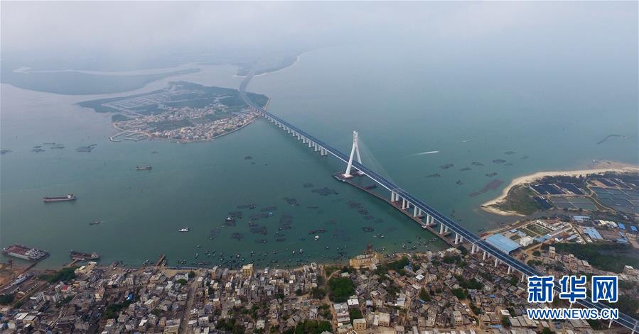 這是3月18日無人機拍攝的海南海文大橋。3月18日,中國首座跨越地震活動斷層的跨海大橋——海南海文大橋建成通車。海文大橋(原名鋪前大橋)連接??谑醒葚S鎮(zhèn)和文昌市鋪前鎮(zhèn),全長5.597公里,其中跨海大橋長約3.959公里。大橋通車后,從??诘轿牟伹版?zhèn)的路程將由原來的1小時30分鐘縮短至約20分鐘。 新華社記者郭程攝