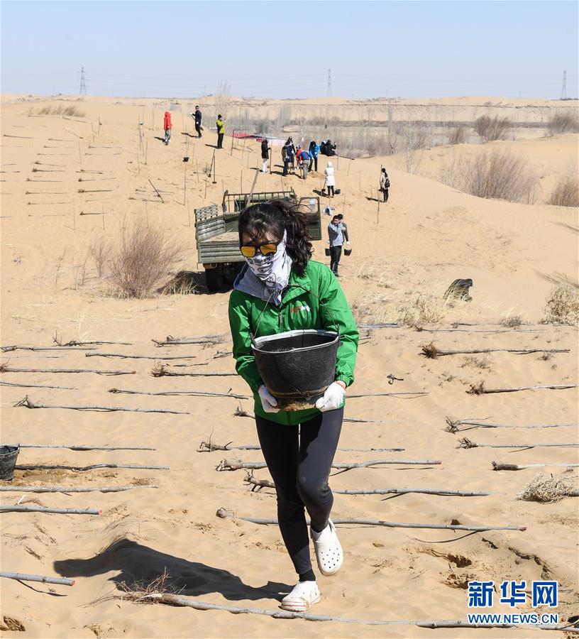 3月31日,中韓青年志愿者在種植新樹。一旁的老樹已經(jīng)吐出新芽。 當日,200余名中韓兩國青年志愿者來到內(nèi)蒙古自治區(qū)達拉特旗庫布其沙漠種樹。2006年起,中國國際青年交流中心與韓國韓中文化青少年協(xié)會組織兩國青年志愿者在庫布其沙漠植樹,參與防沙固沙項目。截至目前已植樹850多萬株,造林3萬多畝。 新華社記者 劉磊 攝