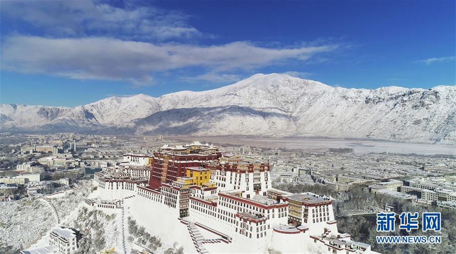 12月19日無人機拍攝的雪后的布達拉宮。 12月18日,西藏拉薩市迎來今年入冬以來的首場降雪。19日清晨,拉薩雪后初霽,處處銀裝素裹,盡顯雪域高原之美。 新華社記者普布扎西攝