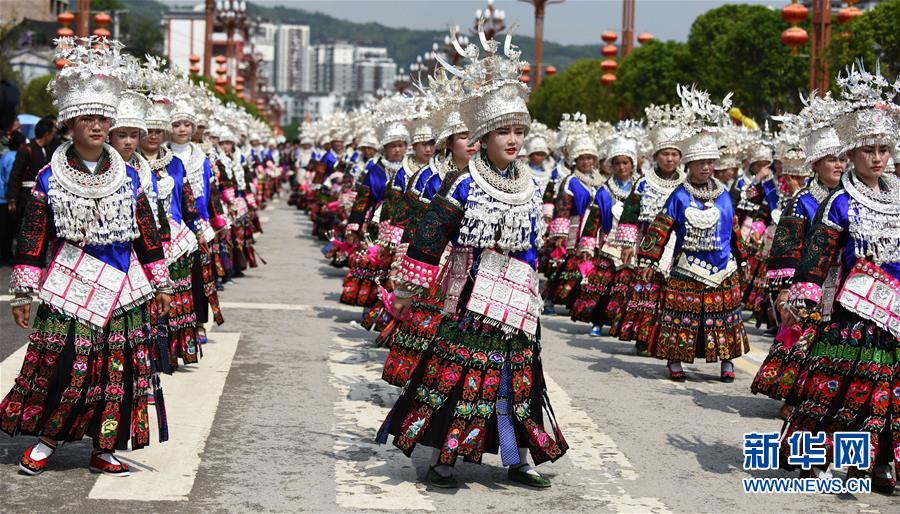 4月18日,臺(tái)江縣苗族群眾參加盛裝游演活動(dòng)。 當(dāng)日,貴州省黔東南苗族侗族自治州臺(tái)江縣迎來一年一度的苗族姊妹節(jié)。節(jié)日期間將舉行苗族盛裝游演、千人長桌宴、千人游方體驗(yàn)、苗族手工創(chuàng)意大賽等一系列活動(dòng)。 姊妹節(jié)是臺(tái)江縣苗族同胞的傳統(tǒng)節(jié)日,2006年被列入第一批國家級(jí)非物質(zhì)文化遺產(chǎn)名錄。 新華社記者 楊文斌 攝