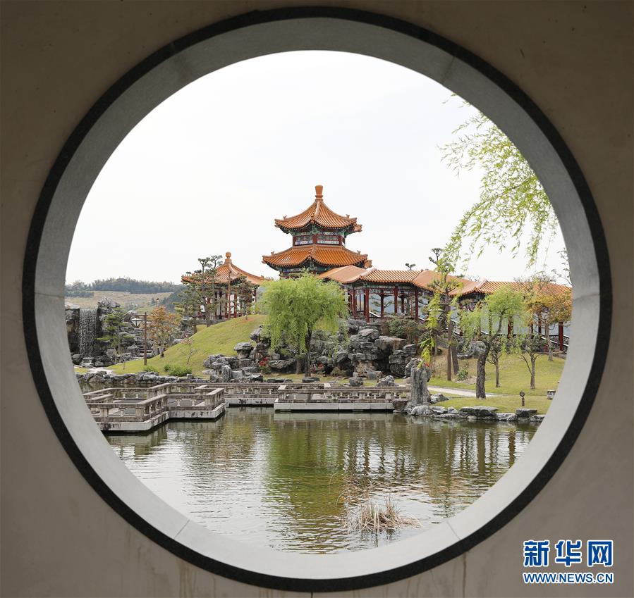 這是2019年4月18日在日本鳥取拍攝的中式園林“燕趙園”?!把嘹w園”是1995年作為日本鳥取縣和中國河北省的友好關(guān)系象征而建立。該園總面積約1萬平方米,借附近的山、湖作景,仿照中國皇家園林設(shè)計。據(jù)介紹,該園園內(nèi)建筑先在中國試建后再拆解運至日本,在中國工匠指導(dǎo)下組建。 新華社記者杜瀟逸攝