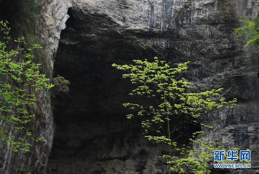 地洞河天坑的巖洞(4月22日攝)。位于陜西省漢中市寧強(qiáng)縣的地洞河天坑,是禪家?guī)r天坑群中規(guī)模最大的一處天坑,坑內(nèi)分布有石鐘乳、石筍,具有極高的地質(zhì)研究價值。 新華社記者 張博文 攝