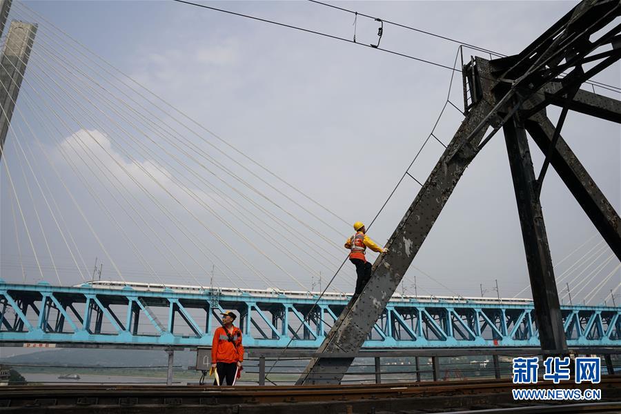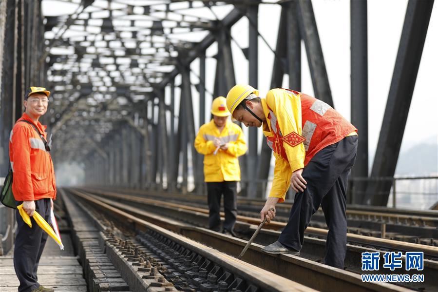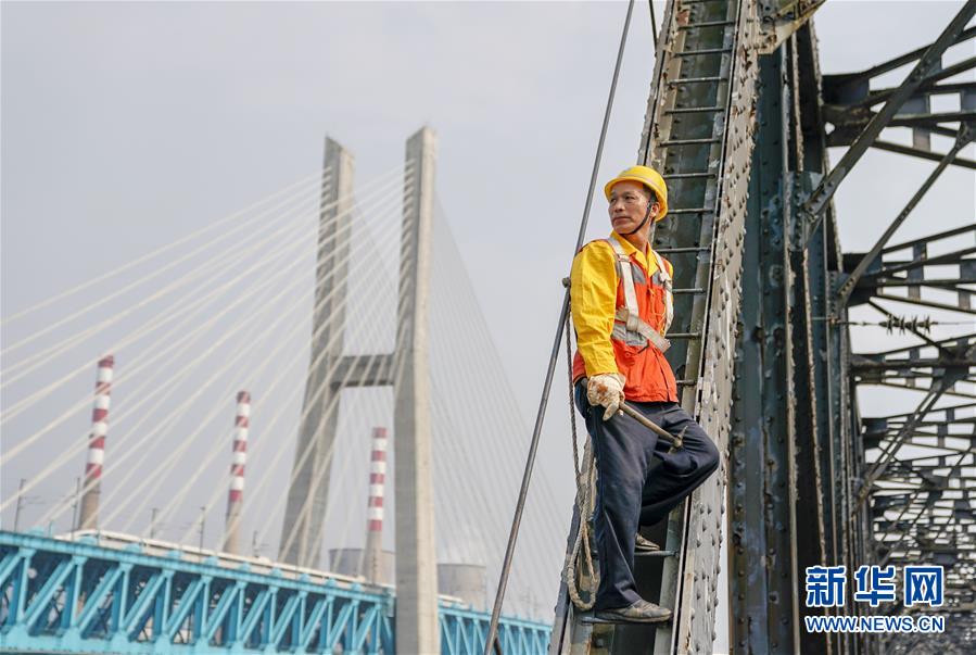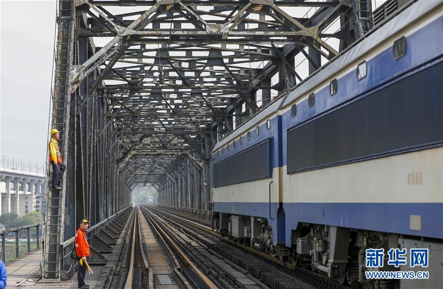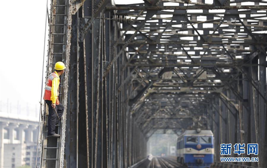 中國鐵路成都局有限公司重慶工務(wù)段的巡檢班組在白沙沱長江大橋上等待機車通過后繼續(xù)作業(yè)(4月23日攝)。 4月23日下午5點40分,隨著重慶白沙沱長江大橋通行的最后一列客運列車順利通過,這座“服役”了59年的重慶首座長江大橋進入“退役”倒計時。4月24日后,所有列車將改線經(jīng)距白沙沱長江大橋約100米的新白沙沱長江特大橋通行,新橋“接力”老橋,運輸能力將得到大幅提升。 白沙沱長江大橋于1958年開工,1960年通過首趟列車,是繼武漢長江大橋之后的第二座長江大橋。 新華社記者 劉潺 攝