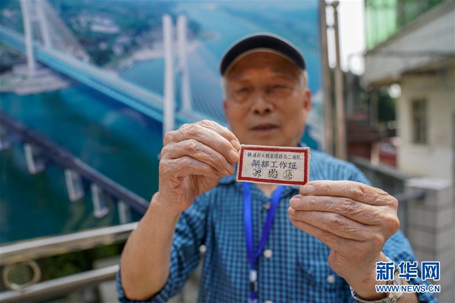 重慶白沙沱長江大橋的建設(shè)者孫貽蓀老人展示他保存的架梁工作證(4月23日攝)。 4月23日下午5點40分,隨著重慶白沙沱長江大橋通行的最后一列客運列車順利通過,這座“服役”了59年的重慶首座長江大橋進入“退役”倒計時。4月24日后,所有列車將改線經(jīng)距白沙沱長江大橋約100米的新白沙沱長江特大橋通行,新橋“接力”老橋,運輸能力將得到大幅提升。 白沙沱長江大橋于1958年開工,1960年通過首趟列車,是繼武漢長江大橋之后的第二座長江大橋。 新華社記者 劉潺 攝