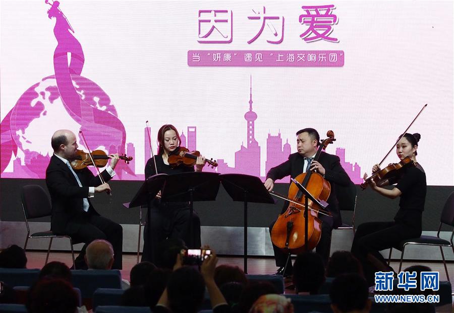 4月25日,上海交響樂團(tuán)的藝術(shù)家在復(fù)旦大學(xué)附屬腫瘤醫(yī)院為患者和醫(yī)護(hù)人員演奏。 當(dāng)日,第一場(chǎng)“全城交響·上交為你而來”音樂會(huì)在復(fù)旦大學(xué)附屬腫瘤醫(yī)院報(bào)告廳奏響,為患者及醫(yī)護(hù)人員獻(xiàn)上一場(chǎng)專屬音樂會(huì)?!叭墙豁憽ど辖粸槟愣鴣怼笔巧虾=豁憳穲F(tuán)2019年向全上海的機(jī)構(gòu)及個(gè)人開放的公益演出項(xiàng)目。 新華社記者 任瓏 攝
