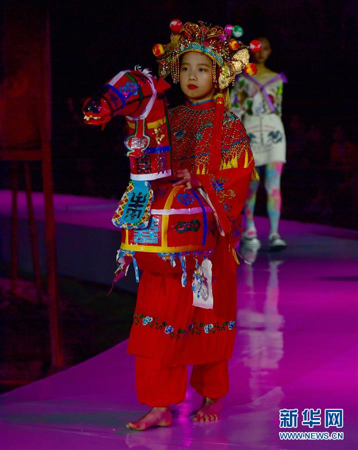 4月27日,小模特身穿民族服飾展示土樓當(dāng)?shù)氐姆俏镔|(zhì)文化遺產(chǎn)竹馬戲。 當(dāng)日,土樓光語(yǔ)國(guó)際時(shí)尚大秀在福建省南靖縣的土樓裕昌樓內(nèi)舉行。這場(chǎng)融匯文化、時(shí)尚與旅游元素的大秀,通過傳統(tǒng)與時(shí)尚的有機(jī)融合,展現(xiàn)南靖土樓及文化的魅力和風(fēng)采。 新華社記者魏培全攝