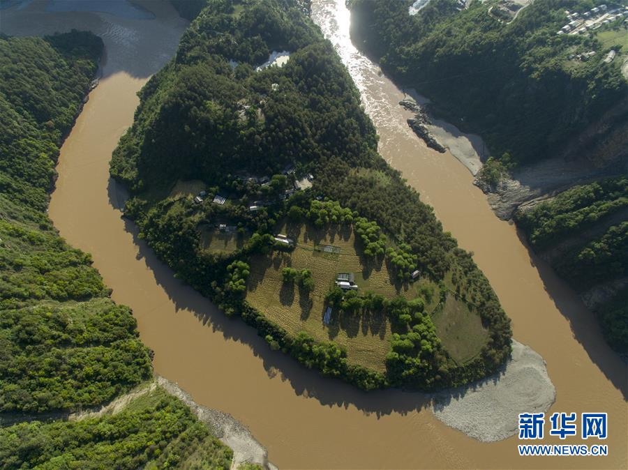 這是4月27日在云南省貢山獨龍族怒族自治縣丙中洛鎮(zhèn)拍攝的“怒江第一灣”(無人機拍攝)。 怒江自青藏高原一路奔騰向南流至云南省貢山獨龍族怒族自治縣丙中洛鎮(zhèn),高黎貢山與碧羅雪山夾江而立,江水順山勢急轉形成了一個氣勢磅礴的半圓形大灣,被稱為“怒江第一灣”。 新華社記者 江文耀 攝