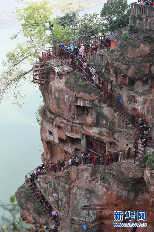 4月1日,樂山大佛景區(qū)的九曲棧道重新對(duì)游客開放。新華社記者 江宏景 攝