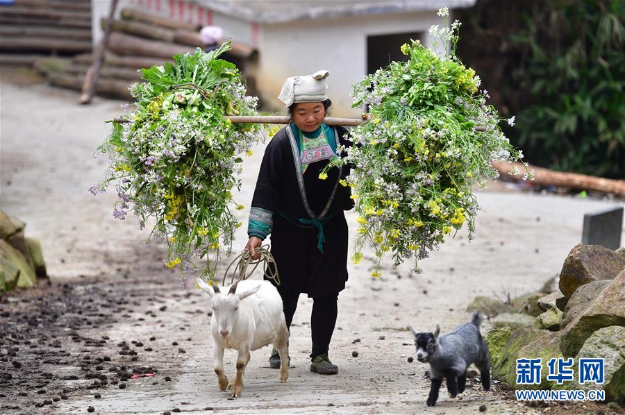 在黔桂烏英苗寨,村民勞作歸來(lái)(3月25日攝)。 新華社記者 黃孝邦 攝