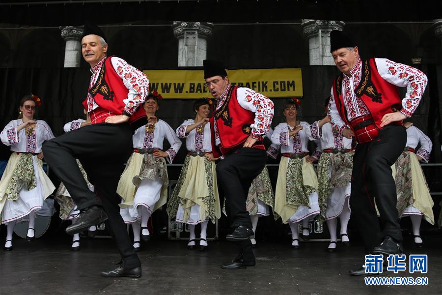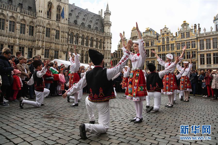 4月28日,在比利時布魯塞爾大廣場,演員表演保加利亞的民族舞蹈。 當日,來自歐洲多個國家的表演者在比利時布魯塞爾大廣場載歌載舞,慶祝為期五天的2019年巴爾干文化藝術(shù)節(jié)圓滿落幕。該文化藝術(shù)節(jié)旨在用音樂、舞蹈、文學(xué)、街頭藝術(shù)等方式向公眾展現(xiàn)東南歐巴爾干半島地區(qū)的民族文化風情。 新華社記者鄭煥松攝