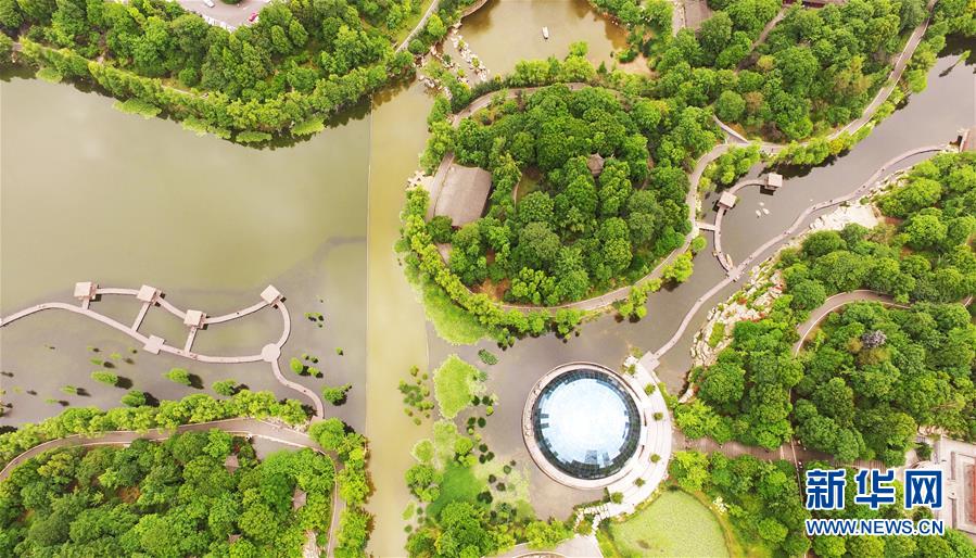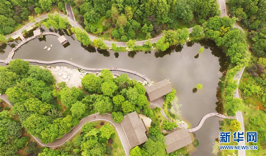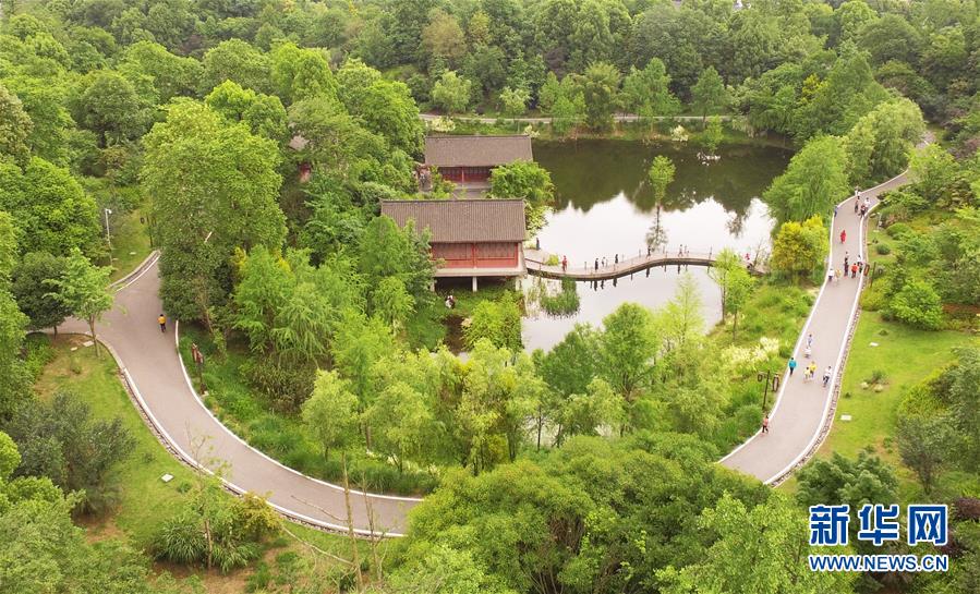 這是5月1日無(wú)人機(jī)拍攝的重慶璧山觀音塘濕地公園景象。