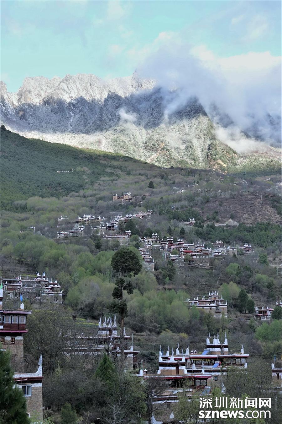 “甲居”,藏語是百戶人家之意。甲居藏寨距丹巴縣城約8公里,從大金川河谷層層向上攀緣,一直伸延到卡帕瑪群峰腳下。在相對高差近千米的山坡上,一幢幢藏式樓房和碉樓灑落在綠樹鮮花叢中,將田園牧歌式的風光展示在人們眼前。李仁奇攝