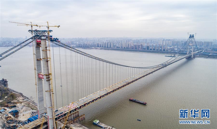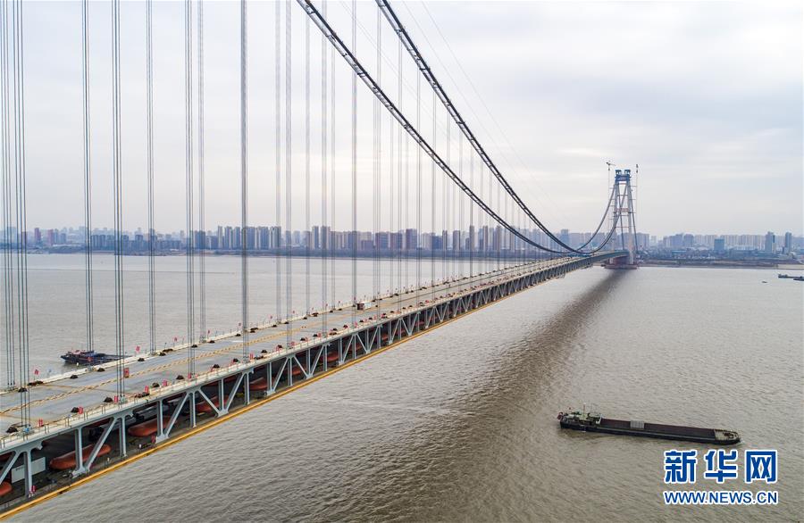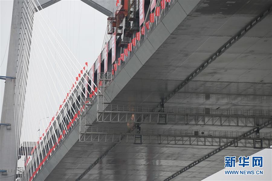 當日,隨著最后一節(jié)鋼梁吊裝到位,由中鐵大橋院設計、中鐵大橋局施工的武漢楊泗港長江大橋順利合龍,標志著這座世界最大跨度雙層公路懸索橋主體工程完工,進入橋面鋪裝階段。 武漢楊泗港長江大橋是武漢市內建設的第十座長江大橋,也是長江上首座雙層公路大橋。 新華社記者 肖藝九 攝