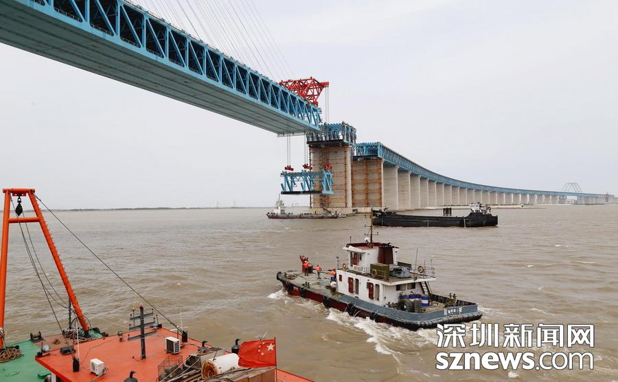 滬通長江大橋主航道橋首個鋼梁段即將合龍