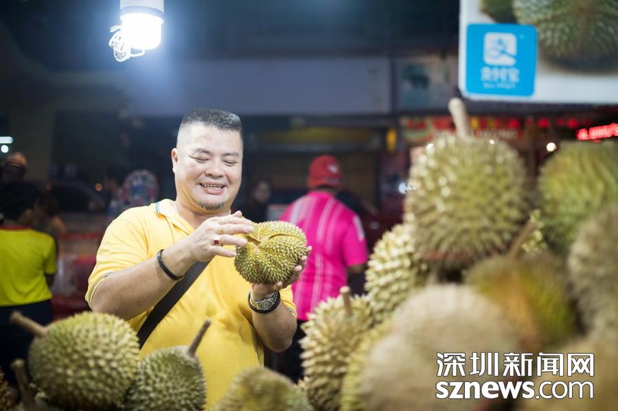 2018年8月10日,馬來西亞沙巴,Alan Tham是馬來西亞沙巴三個(gè)流量檔口的主人,這幾年發(fā)現(xiàn)趕到馬來西亞吃榴蓮的中國游客越來越多,Alan Tham三個(gè)月前開通了支付寶服務(wù),成為了一名海外碼商。最近榴蓮季來臨,每天忙得不行,不過收獲很大,一天能賣出一千公斤榴蓮。