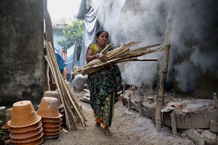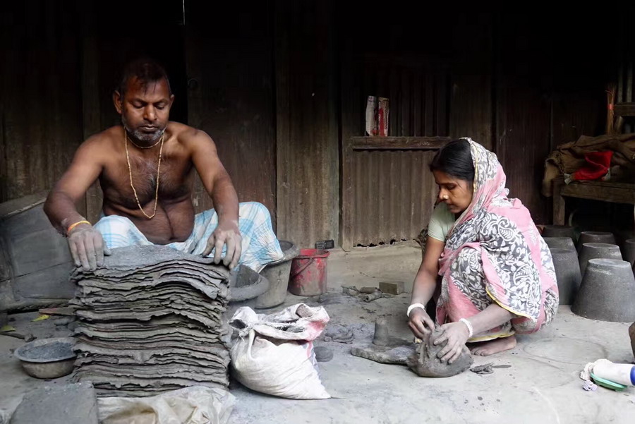 達(dá)卡遠(yuǎn)郊區(qū)一個(gè)印度教徒聚居的村莊,幾乎家家戶(hù)戶(hù)都開(kāi)辦制陶作坊,以傳統(tǒng)工藝制作陶盆、陶罐、陶盤(pán)和建筑裝飾陶器,遠(yuǎn)銷(xiāo)孟加拉國(guó)內(nèi)各地。李仁奇 攝