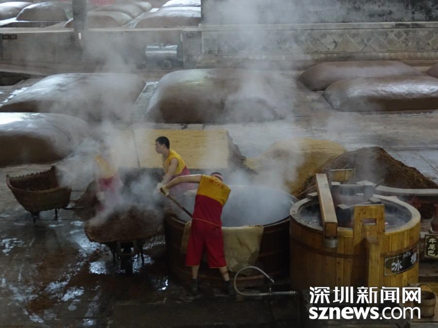 瀘州老窖酒是以泥窖為發(fā)酵容器,中高溫曲為產(chǎn)酒、生香劑,高梁等糧谷為釀酒原料,開放式操作生產(chǎn),多菌密閉共酵,續(xù)糟配料循環(huán),常壓固態(tài)甑桶蒸餾、精心陳釀勾兌等工藝釀制的白酒,以己酸乙醇為主體香味物質(zhì)?!盀o州老窖酒傳統(tǒng)釀造技藝”由大曲制造、原酒釀造、原酒陳釀、勾兌嘗評等多方面的技藝。李仁奇 攝