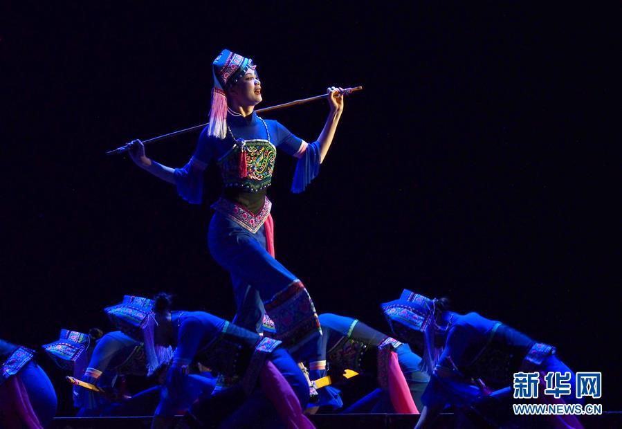 5月16日,在第十八屆群星獎決賽舞蹈類作品比賽中,演員在表演《苗家阿婆笑哈哈》。 當日,作為第十二屆中國藝術節(jié)的重要內(nèi)容,第十八屆群星獎決賽在上海東方藝術中心啟動。84個入圍決賽作品將按照舞蹈、音樂、戲劇、曲藝4個門類進行7場比賽,最終評出20個獲獎作品。 新華社記者 任瓏 攝