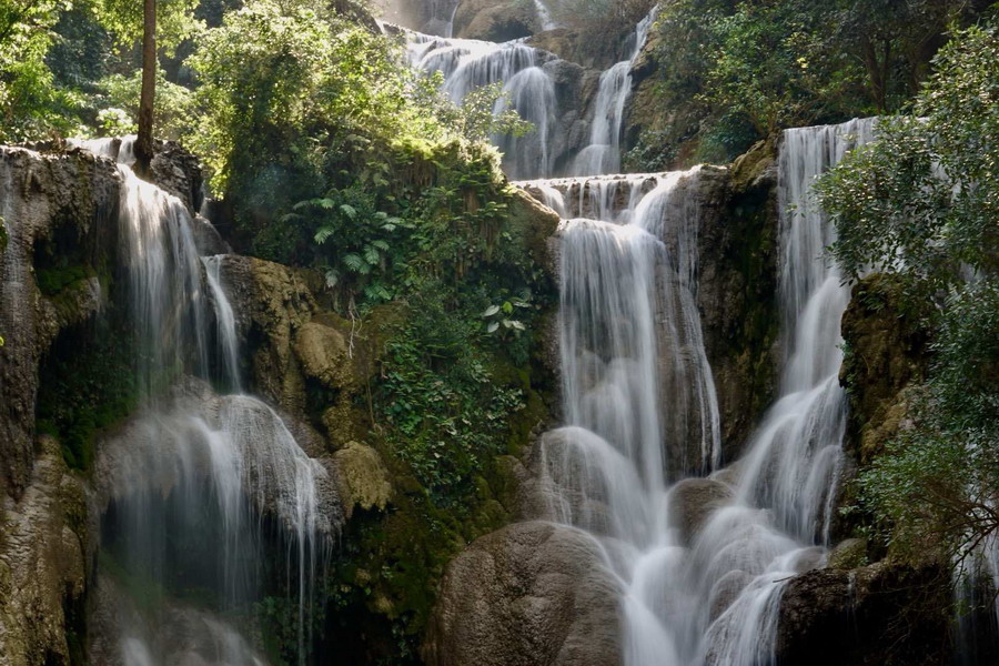 光西瀑布是一個瀑布群,位于瑯勃拉邦以南30多公里的原始森林中,其中一處高40多米,雖然水量不大,但有一種天然的涓細(xì)之美,不同凡響。李仁奇 攝