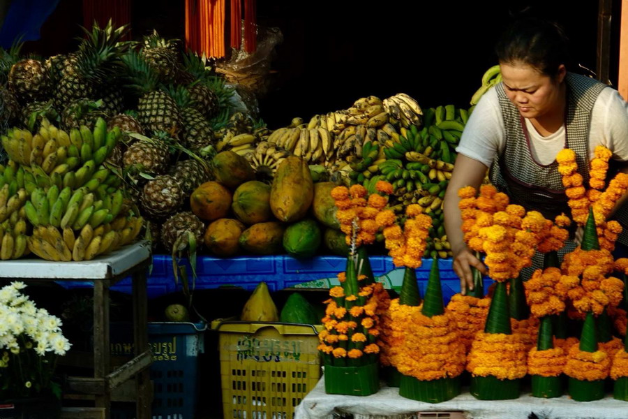 隨著旅游業(yè)的發(fā)展,現(xiàn)在游客們也都參與到布施活動中。僧侶們一直保持著依靠清晨化緣得來的食物充饑的習(xí)俗,多余的食物會用于慈善活動。李仁奇 攝