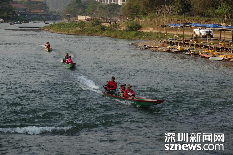 萬榮的喀斯特地貌既典型又集中,在酒店陽臺上就可以將其精華一覽無余,乘小型機(jī)動船在流經(jīng)小鎮(zhèn)的南松河上漂流是當(dāng)?shù)氐拇蚩糜雾?xiàng)目。李仁奇   攝