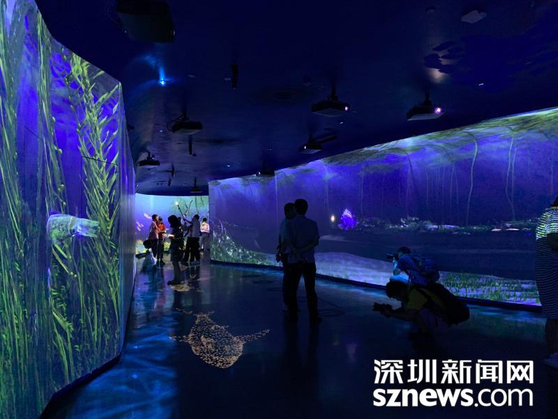 一進館,潛入深海的氣息撲面而來,海底生物在身邊若隱若現(xiàn),海底卷起細小的漩渦,遠處,神秘的海魚跟你打個照面,轉(zhuǎn)身離開,海底生物和海浪的聲音環(huán)繞耳旁,逼真的特效、巧妙的互動機制讓人身臨其境,猶如穿越到藍色大海里,與魚兒作伴,與水母交友,令人沉醉于亦夢亦真的海底世界。